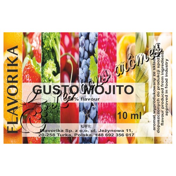 L'arôme mojito (Gusto mojito) est idéal pour donner une touche de fraîcheur à vos recettes de boissons, sauces, nappages, glaces et sorbets.
